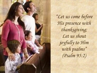 INTRODUCTION TO PSALM 95. 2 Let us come before his presence with thanksgiving and make a joyful. 1 Come let us sing for joy to the LORD.